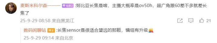 评论区中有网友询问:“努比亚长焦是啥,主摄大概率是ov50h,超广角跟60差不多就差长焦了”。
