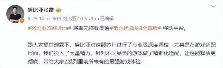 张雷表示,努比亚对这颗芯片进行了专业级深度调校,尤其是在游戏适配层面投入了大量精力,针对不同品类的游戏做了精细化适配,让性能释放更彻底。